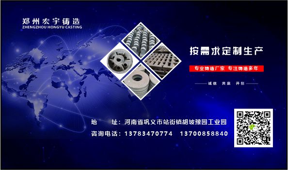 鄭州宏宇鑄造位于河南省鄭州鞏義市是鑄造件廠家,主要生產(chǎn)生鐵機械配件、耐磨襯板、耐磨錘頭、合金耐磨錘頭、制砂機錘頭、鑄鋼件、高鉻合金鑄件、球墨鑄鐵件、消失模工藝鑄件、砂型工藝鑄件等!來樣即可加工。 我們技術(shù)力量雄厚、設(shè)備齊全,目前有高級技師數(shù)名,技術(shù)人員數(shù)十名,能滿足客戶的不同需求,來圖來樣均可生產(chǎn),而且為了確保產(chǎn)品質(zhì)量進一步得到完善和提高, 確保供貨及時達到客戶的滿意,我們采用優(yōu)質(zhì)原材料及先進的制造工藝!